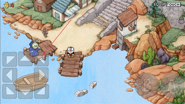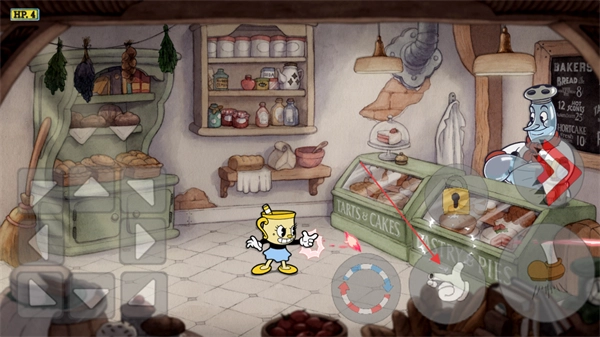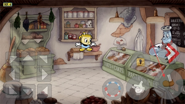 1、进入《茶杯头》的游戏剧情后,利用左下角的方向键操控茶杯头开启冒险之旅。