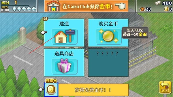 3、在商店里能领取免费金币之类的奖励,点击建造按钮就能进入设施挑选界面来建设城镇。