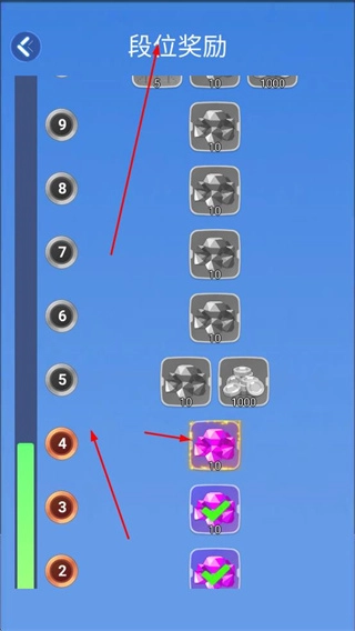 2、参与比赛提升段位,达到相应段位即可领取钻石、金币等段位奖励。