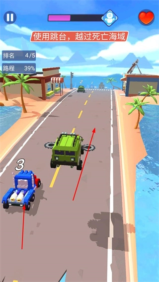 4、当遇到死亡海域这类障碍时,借助跳台之类的设施,使赛车越过障碍,以推进比赛继续进行。