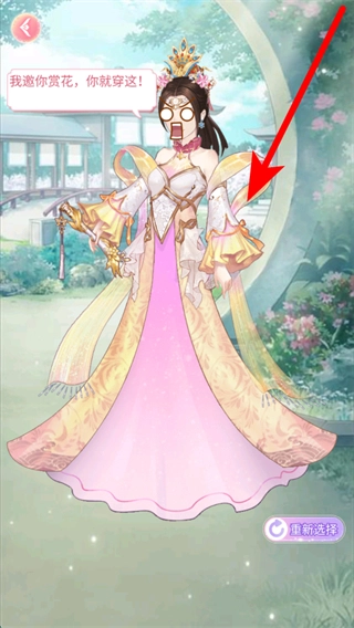 3、面对不同场景需求,比如受邀赏花时,若初始服饰不合适,可点击重新选择,挑选更契合赏花氛围的古风装扮,让形象更得体。