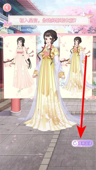 2、初入皇宫等关键场合,会有服饰选择界面,提供多套风格各异的古装,可根据喜好点击选择心仪的那套,开启宫廷相关的体验。