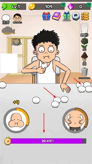 4、在指定时间范围内,操控角色尽可能频繁地与鸡蛋之类的物品进行互动,以此积累分数,从而推进游戏的进程。