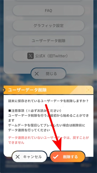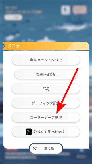 2、在菜单里点击ユーザーデータ削除(用户数据删除)选项。