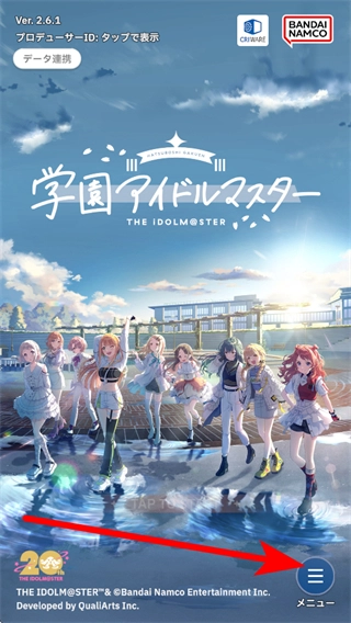 1、启动学园偶像大师游戏,点击右下角的“メニュー”菜单按钮。