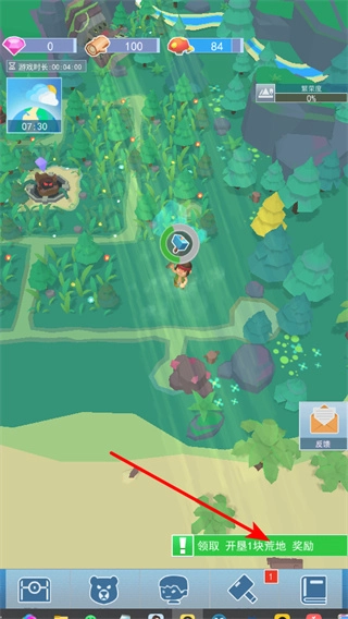 3、收集资源:与场景内的资源点进行互动,获取植物、各类材料等资源,这些资源可用于后续的建设工程与升级操作。