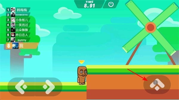 2、点击跳跃按钮操控角色跳跃,这是跨越障碍的核心操作,需在遇到沟壑或平台时及时使用。
