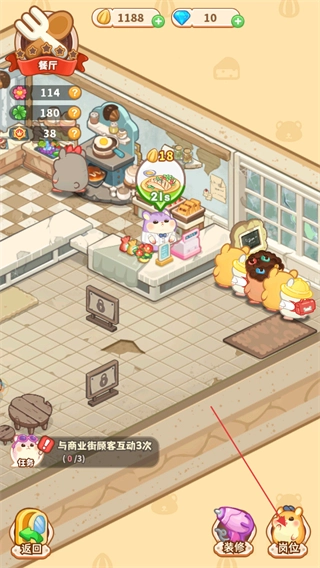 以可爱仓鼠作为核心主角与顾客形象,角色设计萌趣十足,搭配温馨的商业街场景,营造出治愈系的视觉氛围,让经营过程充满轻松愉悦的感觉,适配不同年龄玩家。