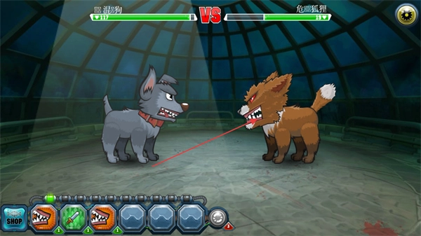 1、操控邋遢狗与危险狐狸展开对战,从下方选择攻击技能,向对方发起进攻。