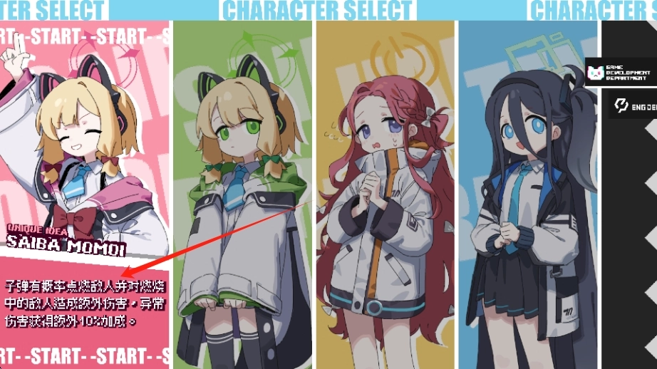 2、在角色选择界面,可选择具备以下效果的技能:子弹有概率点燃敌人,且对处于燃烧状态的敌人造成额外伤害,同时异常伤害获得10%的额外加成。