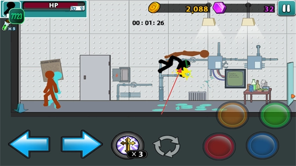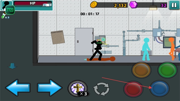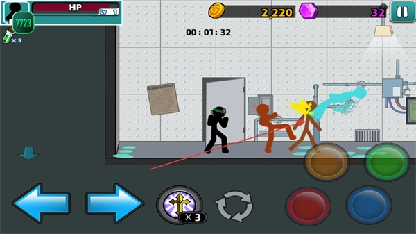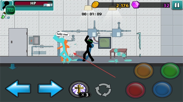1、操控火柴人对抗橙色敌人,借助攻击按钮打出连击,迅速歼灭敌人。
