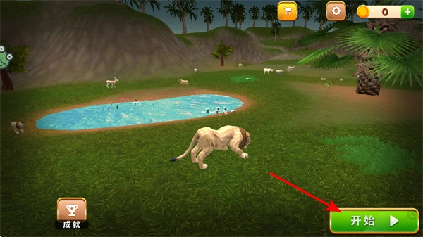 1、在游戏里点击开始按钮,就能进入动物模拟的冒险场景,这是开启游戏的关键步骤,点击之后便可以操控动物开启生存挑战。