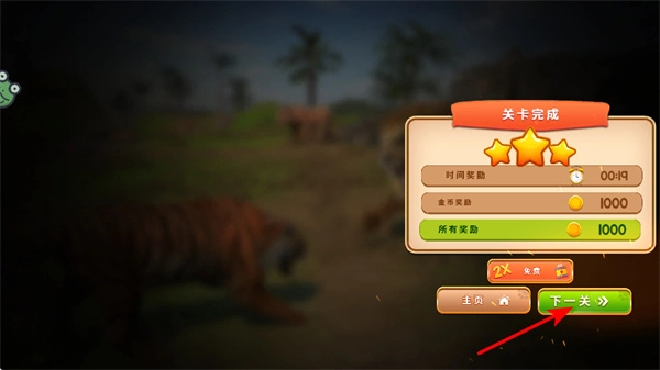 3、完成当前关卡后,点击下一关按钮即可解锁全新的场景与挑战,这是推动游戏进程的重要操作,点击之后需要尽快适应新场景的环境设定。