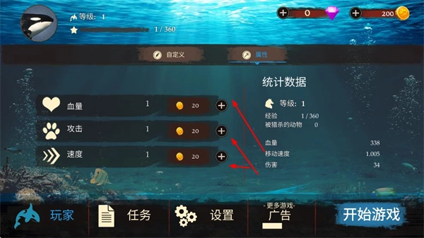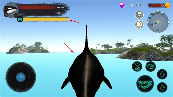 虎鲸在残酷的海洋环境中,通过捕猎和探索不断积累生存经验,以此解锁更强大的生存技能与身体能力,进而提升游泳速度、咬合力等各项属性,从而让自身更具竞争力。