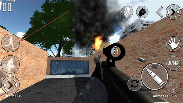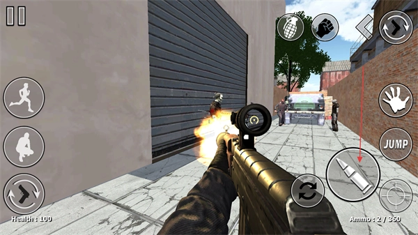 4、点击弹药图标即可射击,注意留意弹药剩余数量,及时进行换弹操作;另外也能借助手雷之类的道具来辅助战斗,从而提高作战效率。