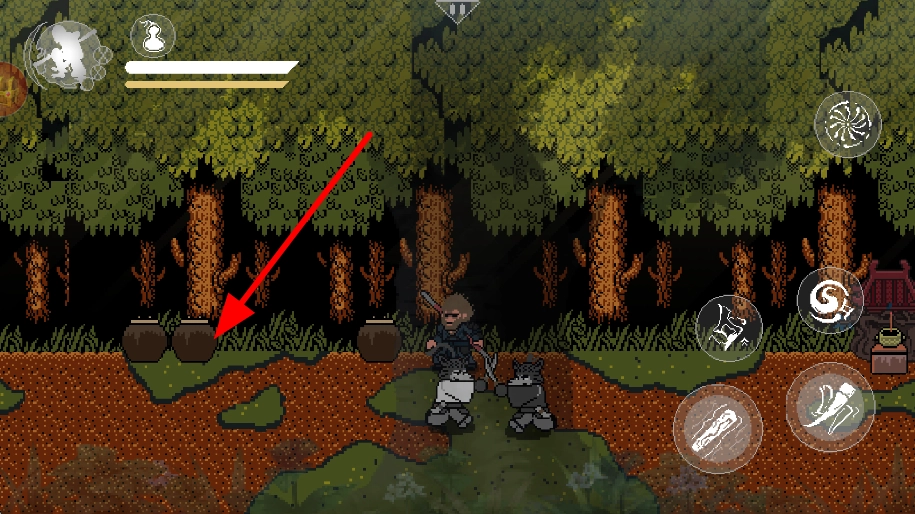 4、当看到酒坛时,可对其执行破坏操作;破坏酒坛后,有一定概率从中发现道具,这些道具能够为角色提供助力,例如提升角色能力或供给各类资源等。