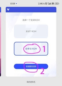 2.之后右滑页面,找到【安卓10 ROM】,点击【创建新实列】;