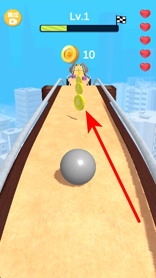 赛道上会散布着金币,你需要操控小球移动去接触这些金币,就能完成收集操作,收集到的金币数量会实时显示在屏幕上。