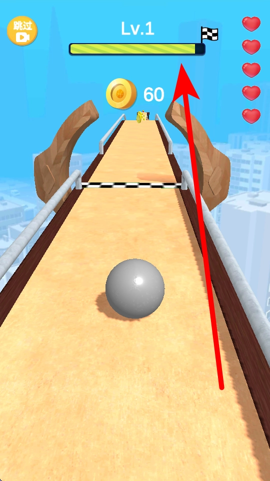 3、持续朝着终点的方向前进,当屏幕上方的进度条完全填满时,游戏便会结束,意味着成功通关。