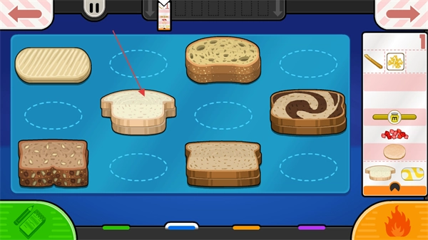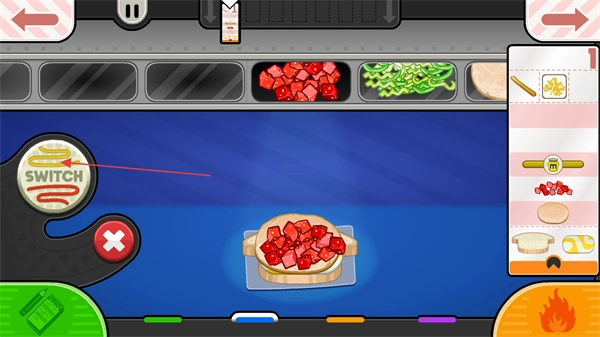 3、放入所需馅料后,点击左侧按钮,即可进行酱料的选择与添加操作。