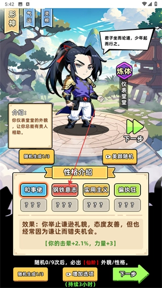进入小白修炼计划后,你可以对角色的性格进行选择,其中红色性格是最优的,可直接选用。