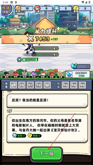 3、游戏进程中会出现各类事件,点击下一段按钮即可开启角色的下一段旅程。