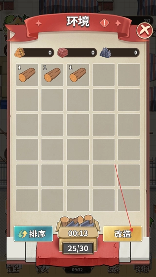 2、点击右下角的环境选项,可通过合成获取材料,之后再点击右下角的改造按钮。