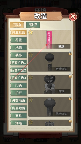 3、在改造界面中,可挑选市场里的各类装扮建筑,点击对应建筑就能完成选择操作。