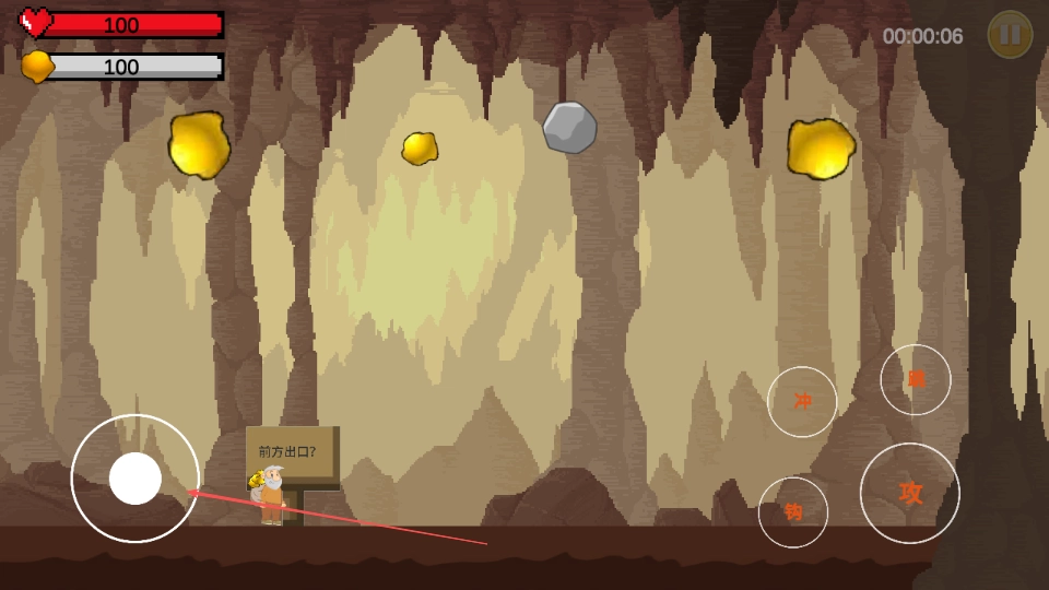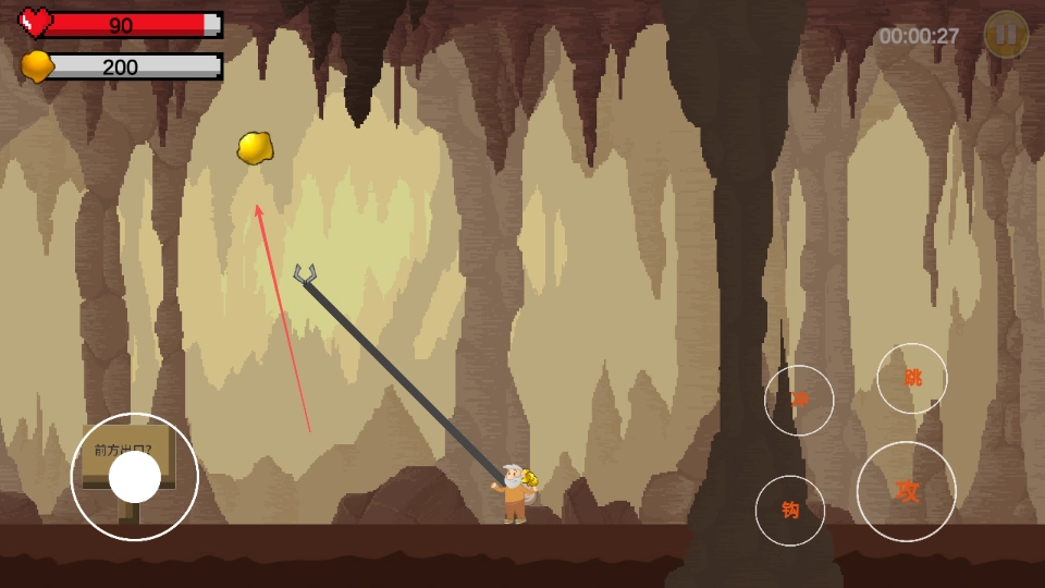 2、看到空中的黄金矿石,点击右侧钩按钮发射钩子,钩取黄金来增加黄金数值。