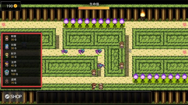 1、点击左下角SHOP商店,可花费金币购买刺客、剑客、射手等不同职业的角色。