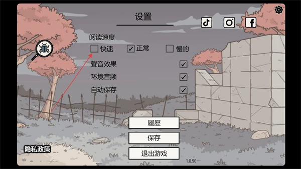 3、点击游戏右上角的设置按钮,能够调节剧情的阅读速度,还可以进行游戏保存等相关操作。