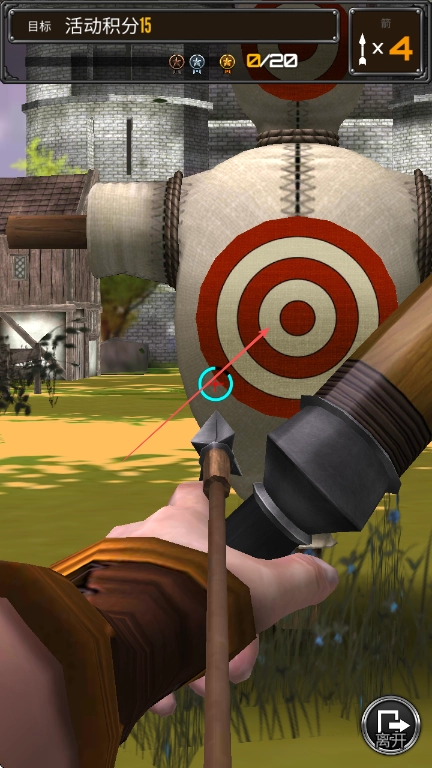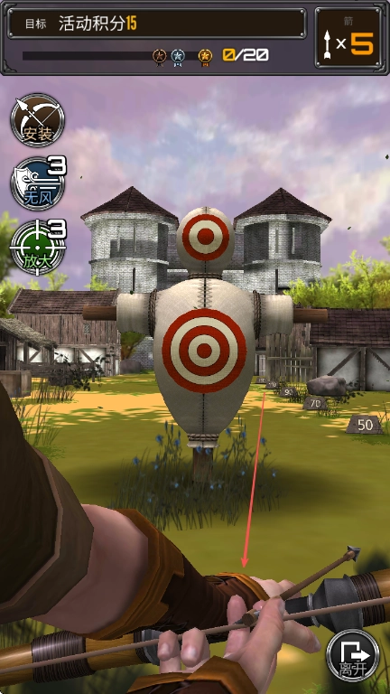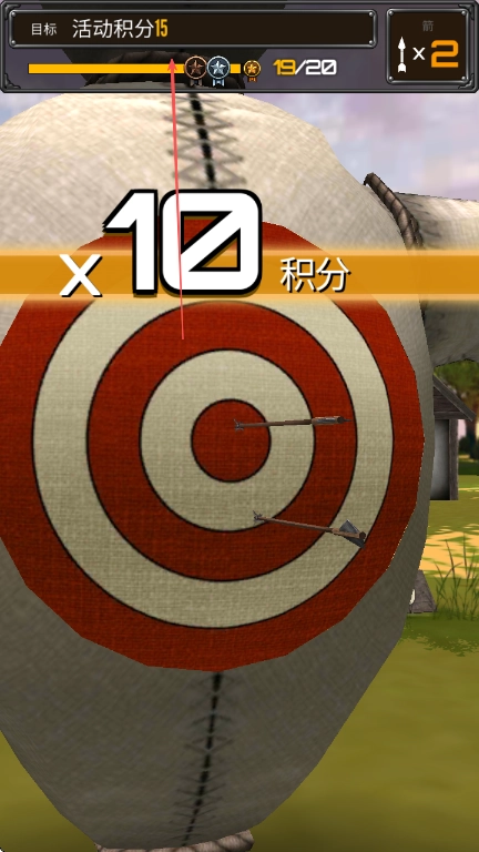 3、拉开弓弦对准靶子的红心区域,松手完成射箭,命中靶子就能得到对应的积分。