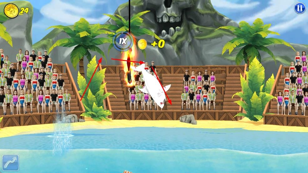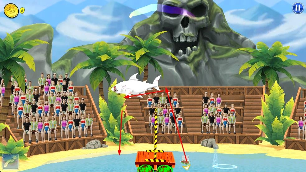 2、当鲨鱼从水面跃起,对沙滩上的人群或特定目标发起攻击时,会触发金币奖励或特殊效果,从而增强破坏带来的乐趣。