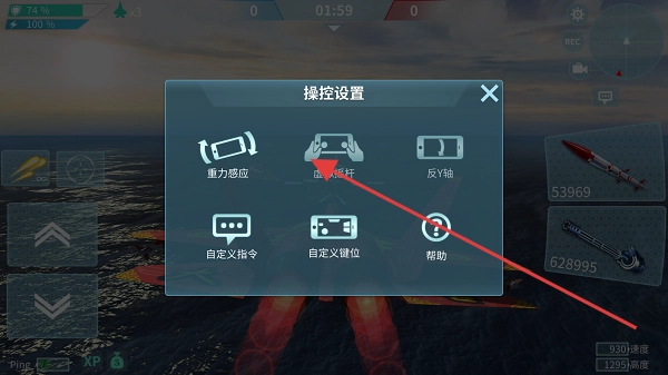 1、点击操控设置,选择虚拟摇杆操控方式,这样能更方便地控制飞机的飞行方向。