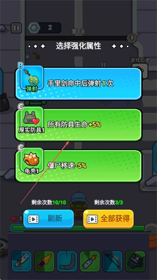 4、挑选像所有防具生命值提升5%这类强化属性,以此增强自身的战斗能力,从而能够顺利通过关卡。