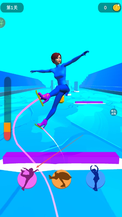 当出现不同的滑冰姿势图标时,点击与之对应的姿势按钮,就能让角色呈现出相应的滑冰动作。