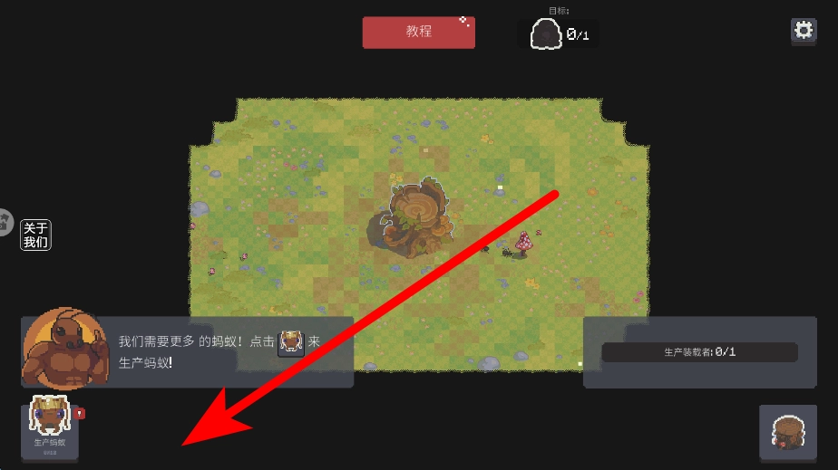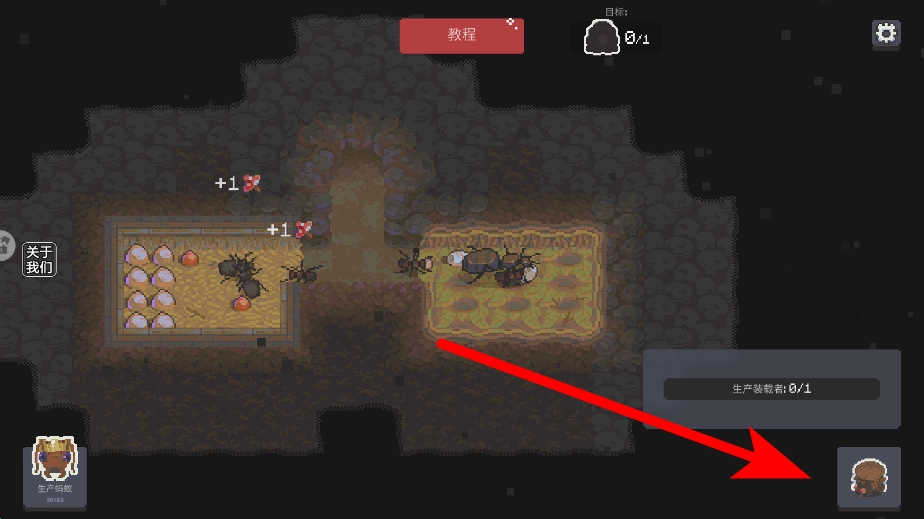 1、新手刚开始进行蚂蚁生产时,可以点击蚁后的生产按钮,启动蚂蚁的生产流程,持续增加蚂蚁族群的数量,为后续的探索和发展打下基础。