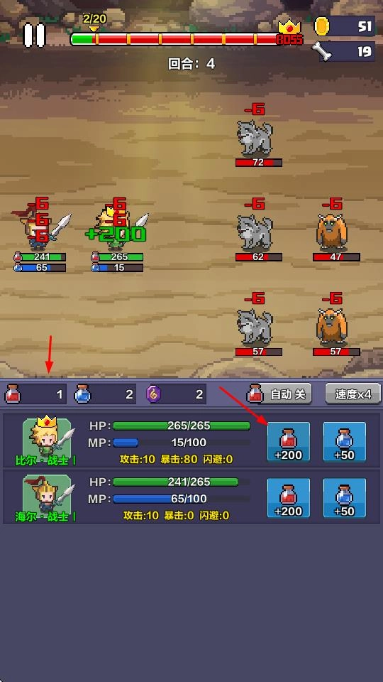 3、当角色血量偏低时,点击界面上的药水,就能为角色恢复生命值,以此保证战斗续航能力,以便继续应对接下来的敌人。