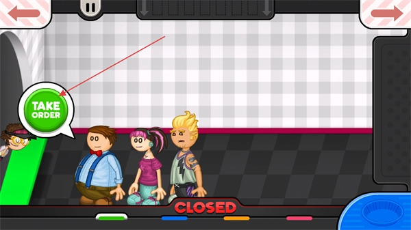 1、点击绿色按钮,让小伙为正在排队的顾客提供点餐服务。
