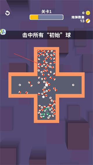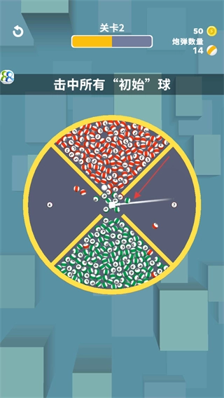 2、击中初始球后会分裂出大量小球并进行无规则运动,可借助这些小球的数量优势来达成关卡目标。