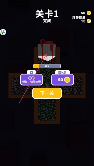 4、每通过一个关卡都会提升礼盒的解锁进度,开启礼盒即可获取道具与金币奖励。