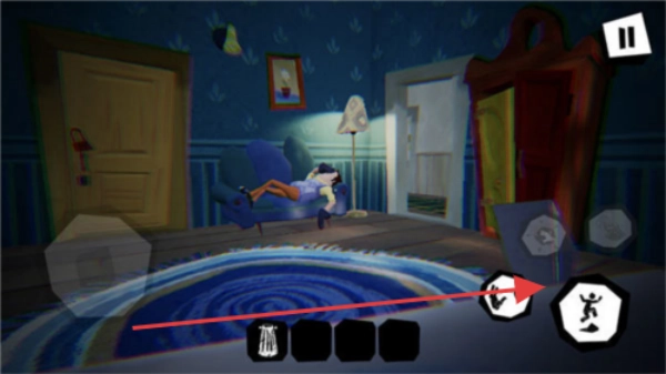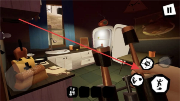 2、在探索房间的过程中,点击屏幕上的互动按钮来收集锤子之类的道具,这些道具能在后续对抗敌人或是解谜时派上用场。