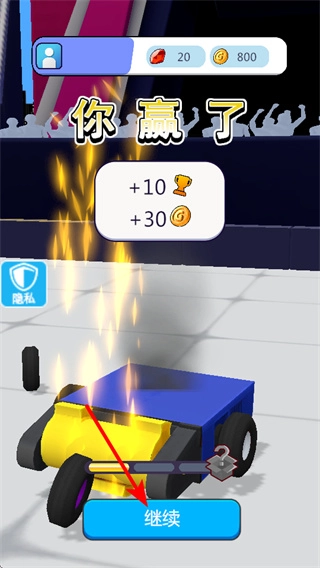 3、战斗胜利后点击继续按钮,这是推进游戏进程的核心操作步骤,点击后不仅能领取胜利奖励,还可解锁新的比赛或功能。