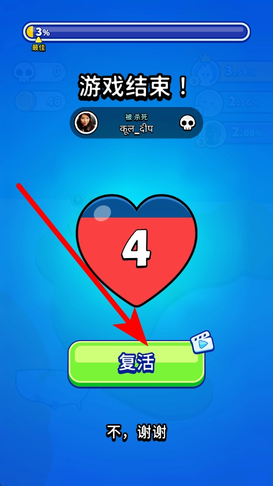 2、接着处理复活环节:游戏结束后,若存在复活机会,可依据提示决定是否复活,以此获取再次参与区域争夺的资格,推动游戏进程继续。