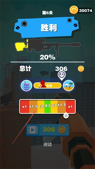 游戏内已移除所有广告形式,无论是开篇广告、关卡间广告还是奖励广告均不再出现;复活机会、额外弹药、关卡提示等内容无需观看广告即可直接获取;游戏流程保持完全连贯,玩家可专注于瞄准射击与关卡突破的核心体验。