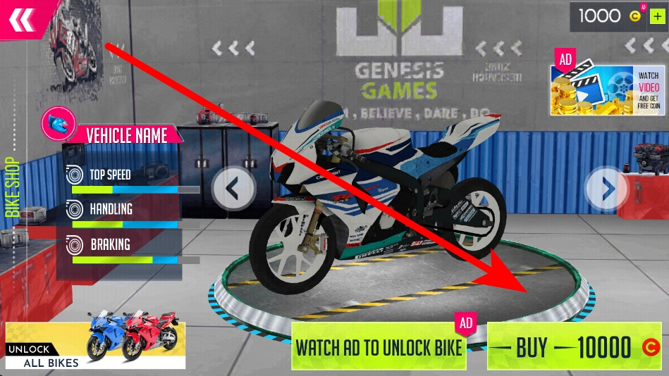 1、玩家挑选摩托车,可查看不同摩托车的极速、操控、制动等属性,根据喜好和需求,选择合适的摩托车,为竞速做好准备。