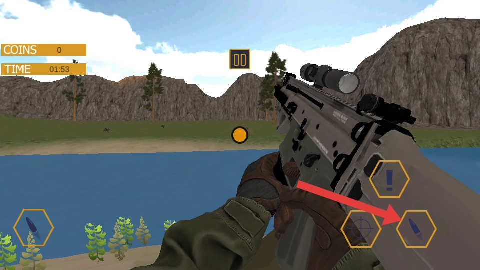 3、射击时借助植被进行掩护,避免暴露自身位置,打完一轮后要及时查看弹药剩余量,以免目标出现时因弹药不足而错失获取金币的机会。
