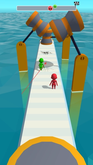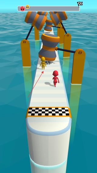 3、时刻留意前方的障碍物,灵活调整行进路线,抓住对手被摆锤阻挡之类的机会实现超越,尽可能保持在跑道中间位置,朝着终点全力冲刺以完成通关。