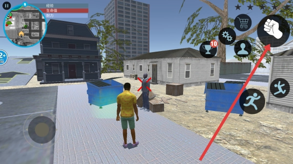 3、商店购物车图标可买装备,奖杯图标领任务奖励,必要时需要点击拳头遇到警察或者敌人追击。