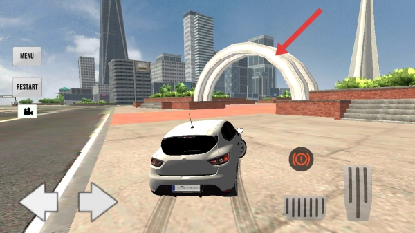 3、需要驾驶汽车朝着前方拱形建筑的方向进行行驶,抵达该目标区域,完成目标任务。